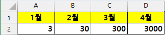 그리고, 2, 3, 4월에 같은 수식을 모두 복사하시고, 아래와 같이 1월 → 2월, 3월, 4월로만 바꿔주시면 되겠습니다.