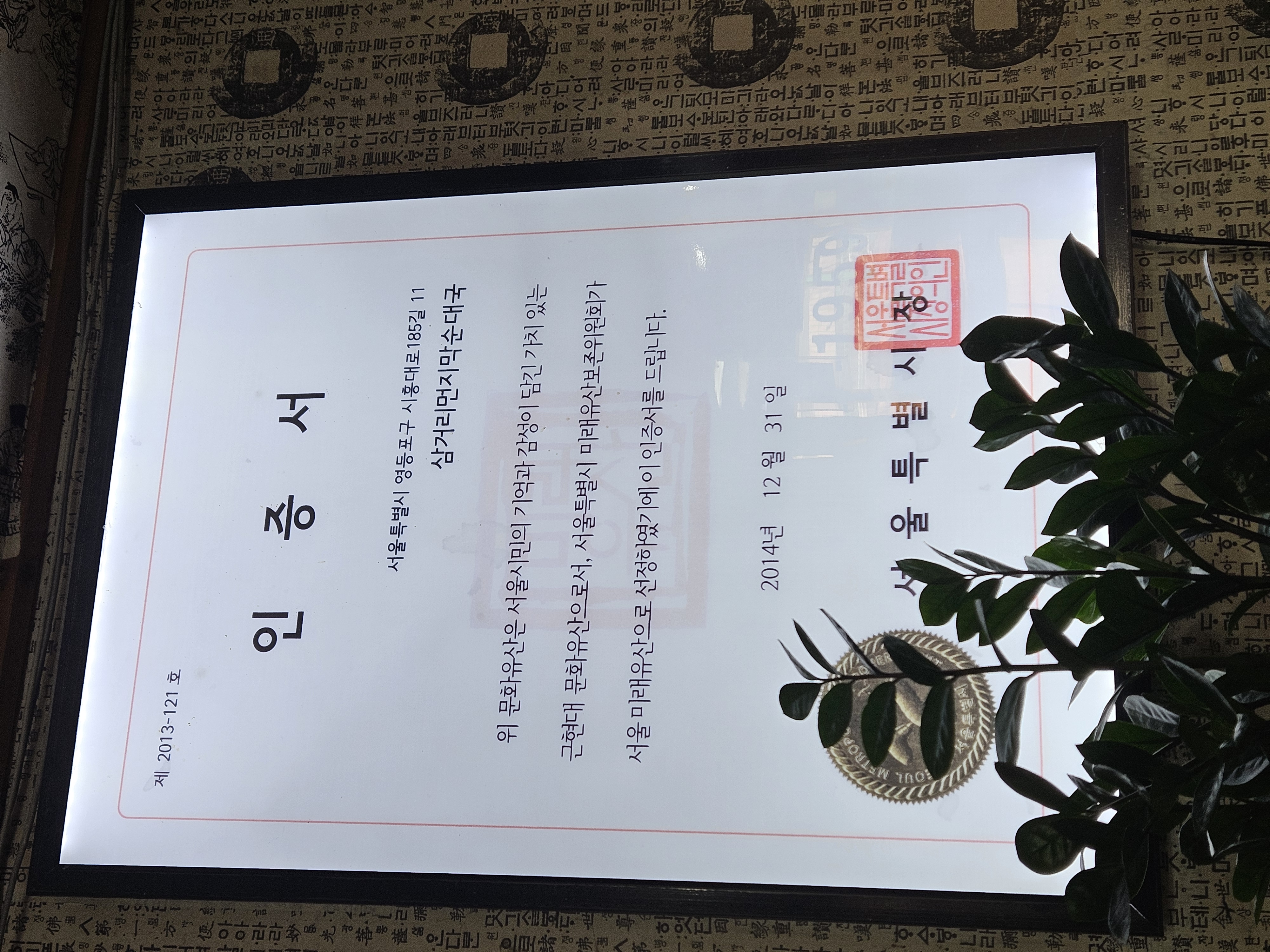 문화유산 인증서도 있고, 다른 인증서도 많이 있습니다.