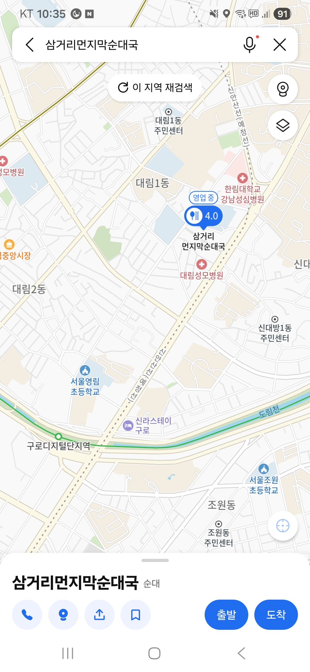 대림성모병원과 한림대학교강남성심병원 사이의 골목에 있습니다.